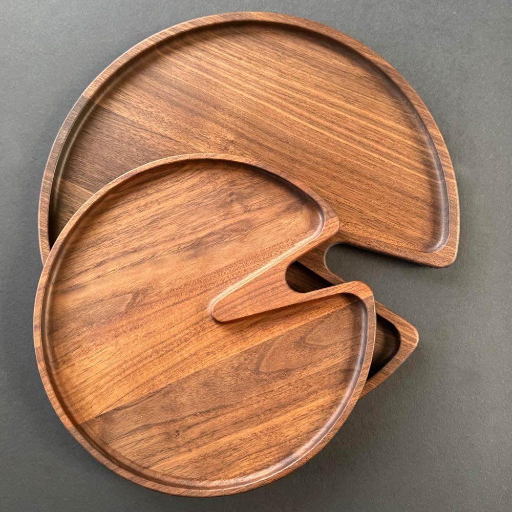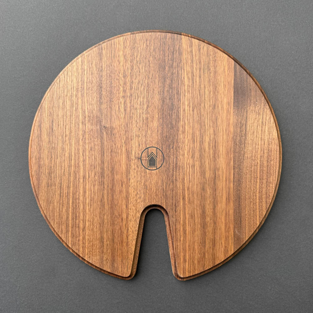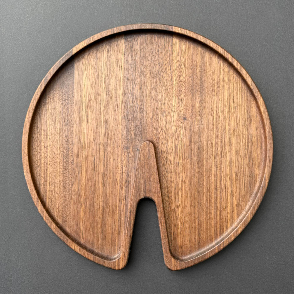 Holztablett mit Griffkante in stilisierter Seerosenblattform, zweifach geölt mit AURO-Hartöl.