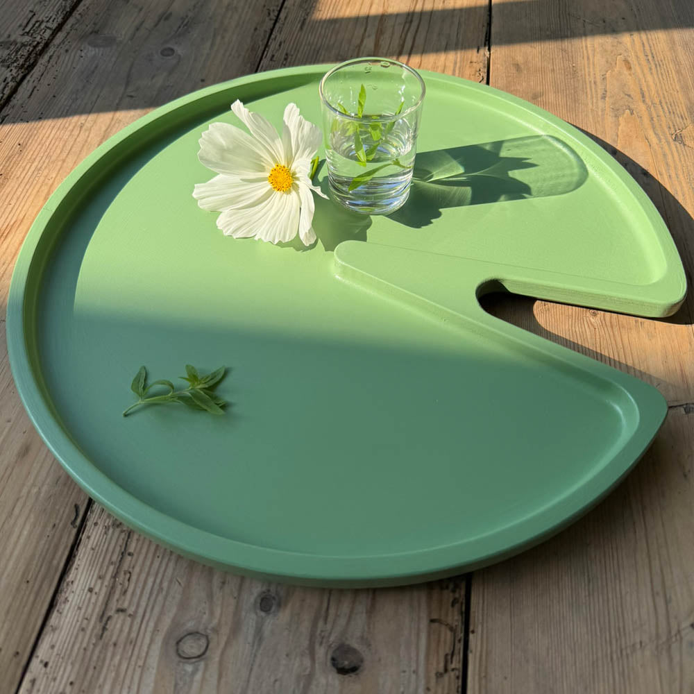 Auf unsere neueste Kreation sind wir besonders stolz! Passend zum Sommerthema 2025 "Seerosenteich" haben wir dieses schöne Seerosentablett entwickelt. Darauf lassen sich gefüllte Gläser, Blumenväschen oder Schalen mit Köstlichkeiten ganz unkompliziert mit einer Hand transportieren. Ein Designstück, das Potenzial hat, ein echter Klassiker zu werden!
