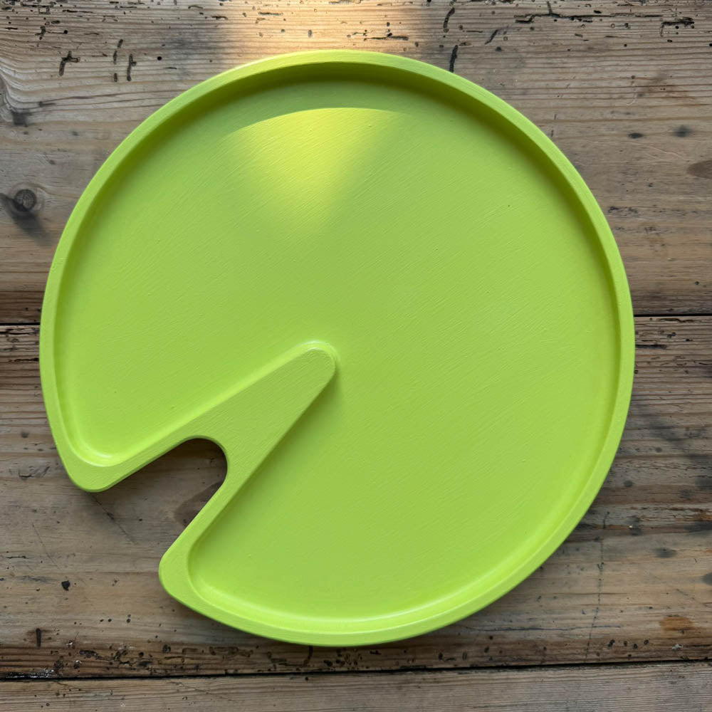 Dieses Seerosentablett aus Buchenholz ist mit AURO-Lack in der Farbe einer frischen Limone gestrichen.