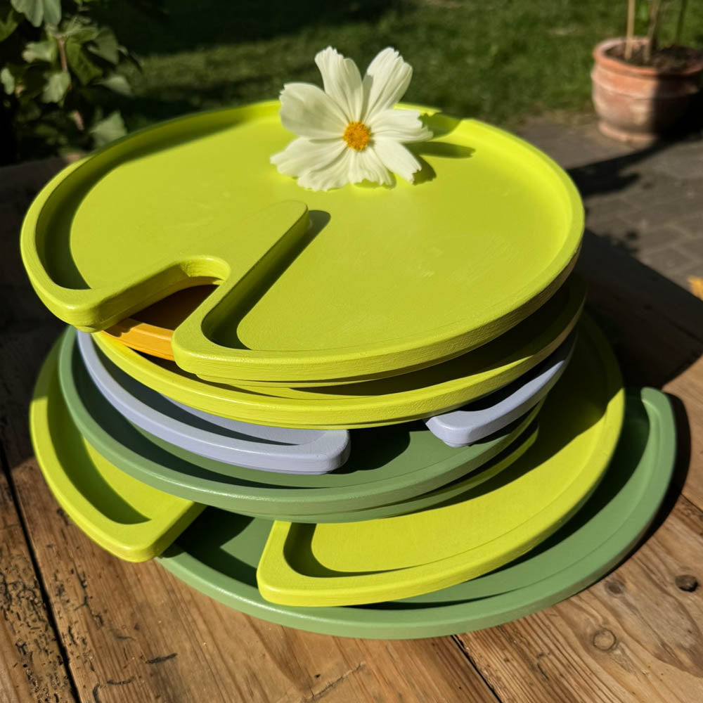 Auf unsere neueste Kreation sind wir besonders stolz! Passend zum Sommerthema 2025 "Seerosenteich" haben wir dieses schöne Seerosentablett entwickelt. Darauf lassen sich gefüllte Gläser, Blumenväschen oder Schalen mit Köstlichkeiten ganz unkompliziert mit einer Hand transportieren. Ein Designstück, das Potenzial hat, ein echter Klassiker zu werden!