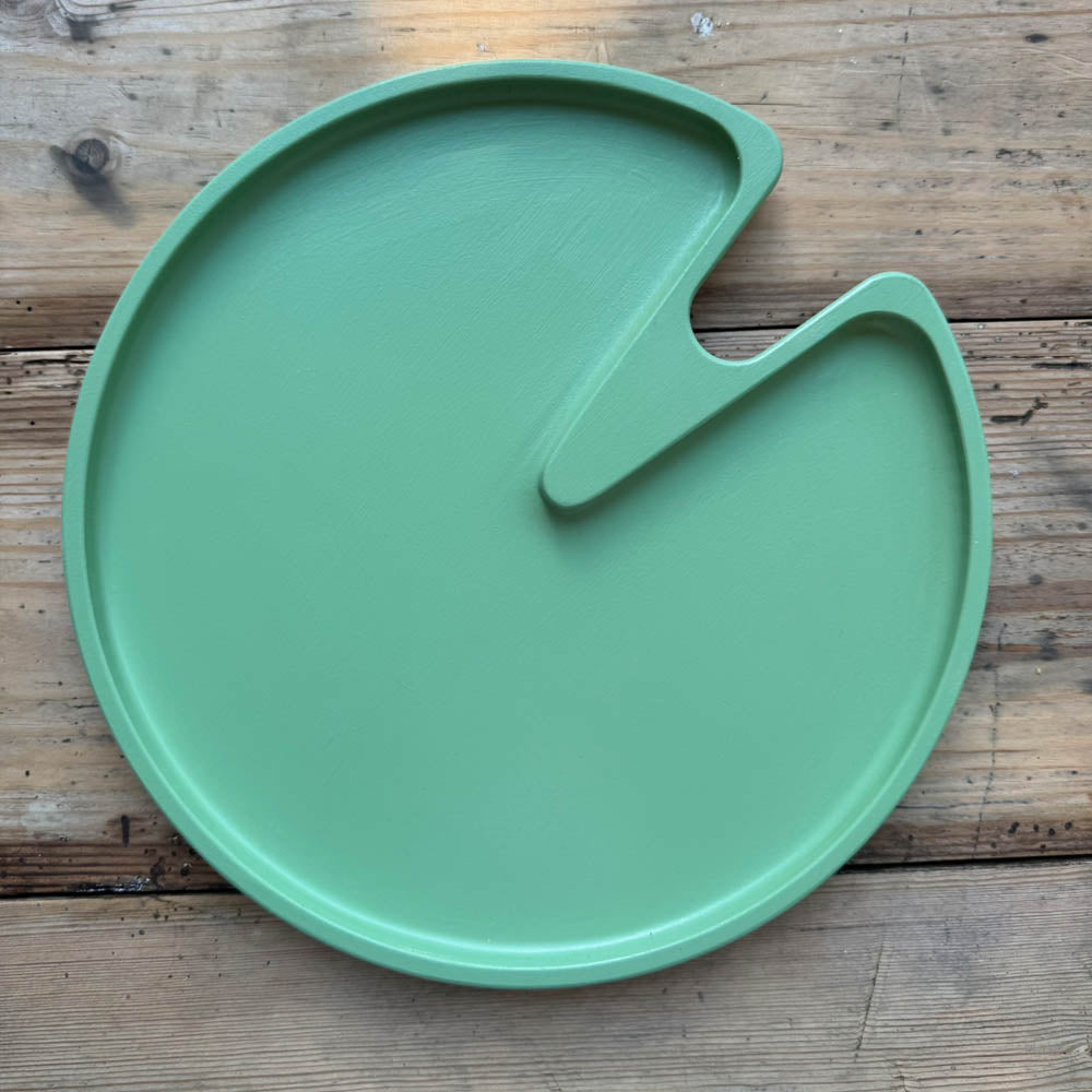 Dieses Seerosentablett aus Buchenholz ist mit AURO-Lack in Reseda-Grün gestrichen.